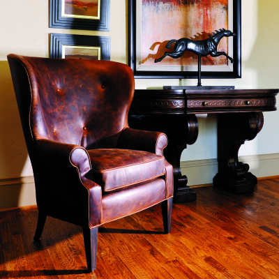 The club chair is an upholstered, roomy armchair with extra-deep seats. Usually placed in pairs, these chairs make a great addition to a cozy nook or a companion alongside a sofa. They usually have leather upholstery or nail-head trim, or in our case, both. The club chair’s name is rumored to have come from gentleman’s clubs, but it originated in stylish France, called fauteuil confortable, which means comfy chair.